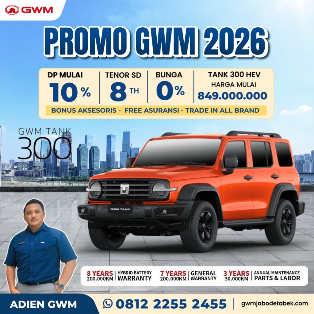 Promo GWM Tank 300 HEV Terbaru 2026 – Pusat informasi Promo GWM Tank 300 HEV di Jabodetabek.