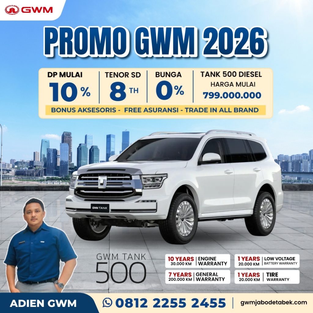 Promo GWM Tank 500 Diesel Terbaru 2026 – Pusat informasi Promo GWM Tank 500 Diesel di Jabodetabek.