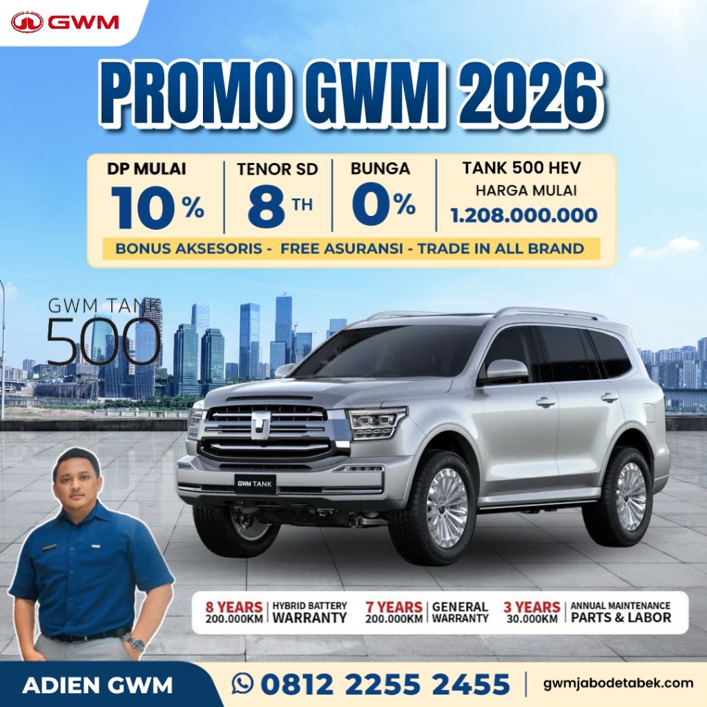 Promo GWM Tank 500 HEV Terbaru 2026 – Pusat informasi Promo GWM Tank 500 di Jabodetabek.